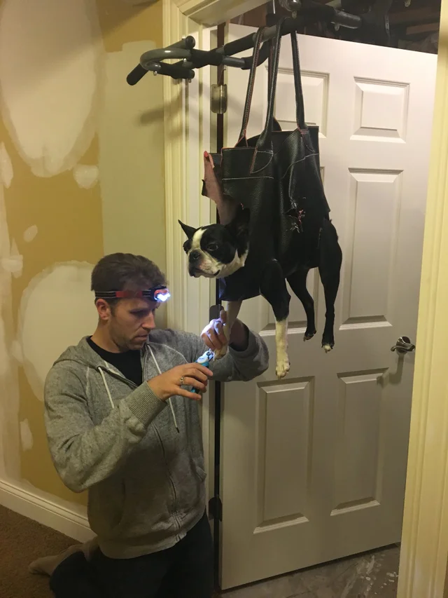 Dogs, just like us, despise the process of getting their nails clipped. However, a remarkable dog owner has ingeniously crafted a nail-cutting contraption that deserves a place in every dog store worldwide. This Reddit user said, “a pug that hates getting its nails clipped hangs on the ceiling.” These kinds of situations involving animals make us laugh.