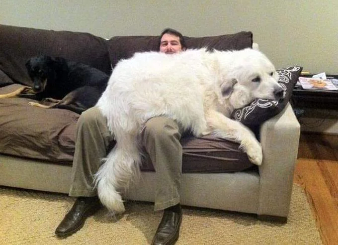This dog looks like it’s the size of three men. We’ve never seen a dog this big before It amusingly seems to have mistaken its human for an extension of the couch, blending in seamlessly with the furniture. This is one of those real-life situations that baffle us. The sheer size of that dog is truly extraordinary and worthy of a mention in the Guinness Book of World Records. It stands as a remarkable testament to the diversity and awe-inspiring nature of the animal kingdom. This guy said to his dog, “I’ll just become a huge couch then.”