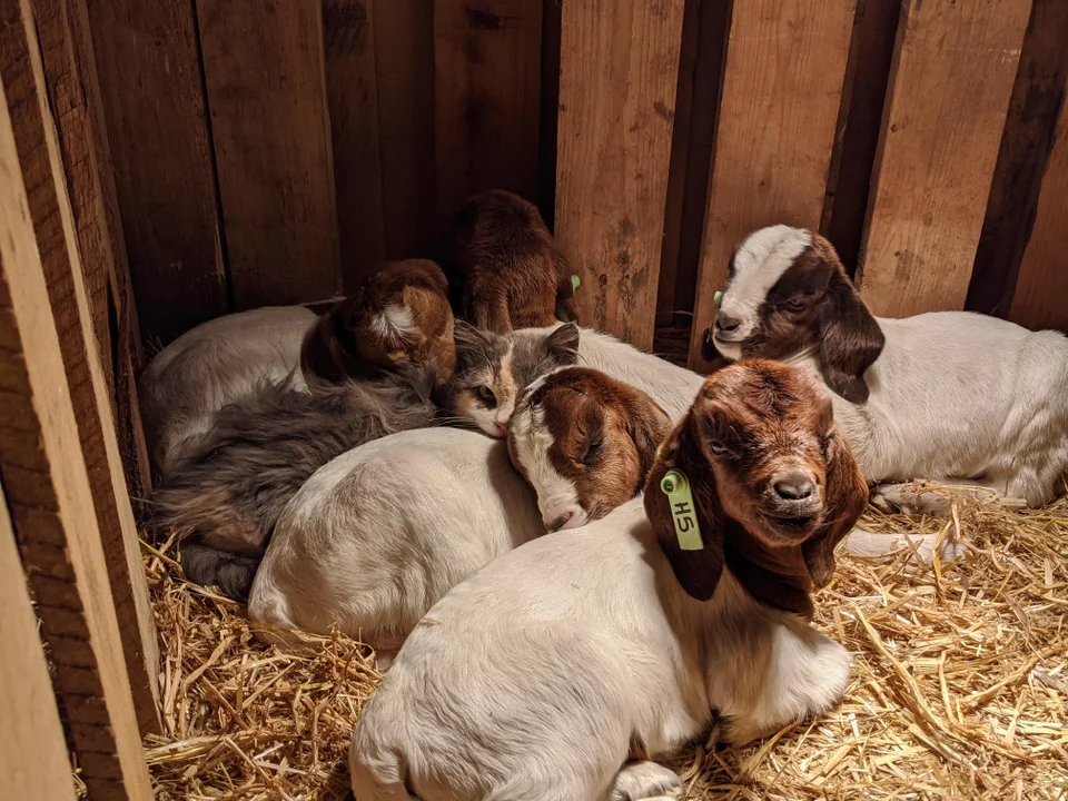 Kittens Snuggling Up With Goats